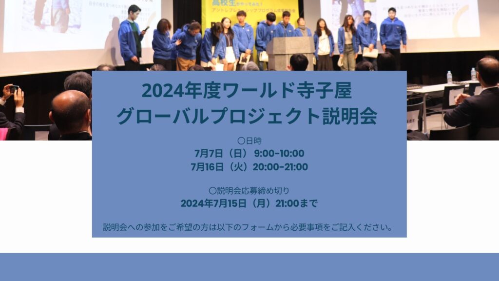 それに伴い、ワールド寺子屋グローバルプロジェクトのオンライン説明会を全3回行います。